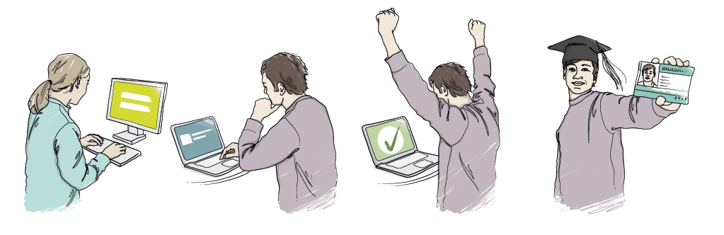 - Inloggningsuppgifter skickas till eleverna, som då är behöriga till anmäld kurs. Prata med din yrkesutbildningsansvariga eller handledare vid problem. Kontakta support i andra hand.